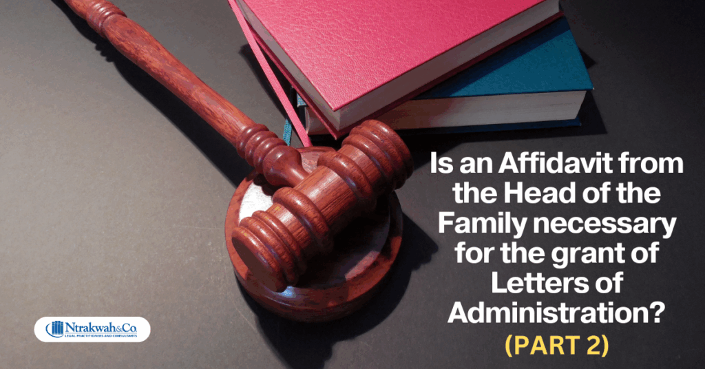 Undoubtedly, a court can grant LA without an affidavit from the head of the family as stated in Progressive Modern Company Ltd v. Esther Bonsu and Two Others, above. The removal of this requirement of an affidavit from the head of the family from the lists of documents a court requires would ensure that the purpose and intent of PNDCL 111 are truly achieved.